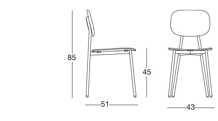 Stol med målad metallkonstruktion, polypropylensäte förstärkt med glasfiber.